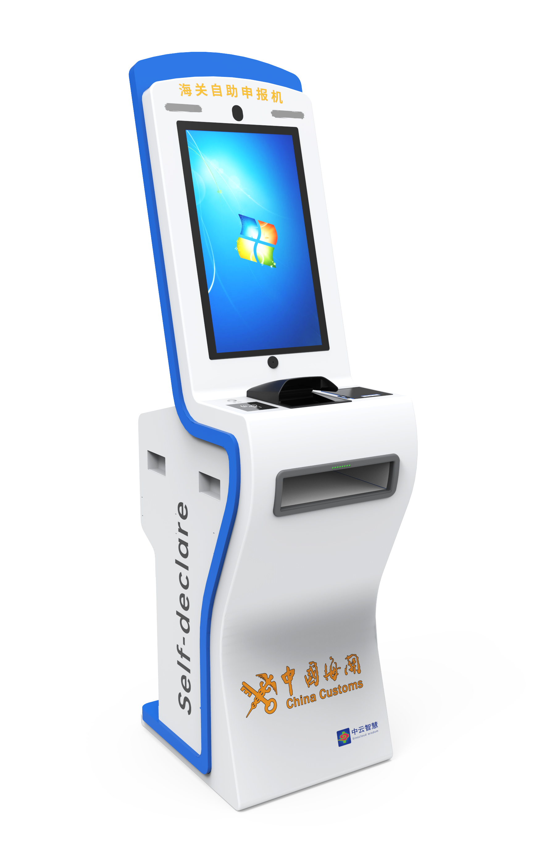 It is used for self-service health declaration, goods declaration and currency declaration. The main functions include passport verification, face collection, body temperature detection and warning, health declaration, goods declaration, currency declaration, record and declaration form printing, and multilingual prompts. The declaration data is fully electronic, which is convenient for storage, management, and trace, and improves the efficiency of passengers’ declaration and clearance, enhancing their experience and reducing the workload of stuff.