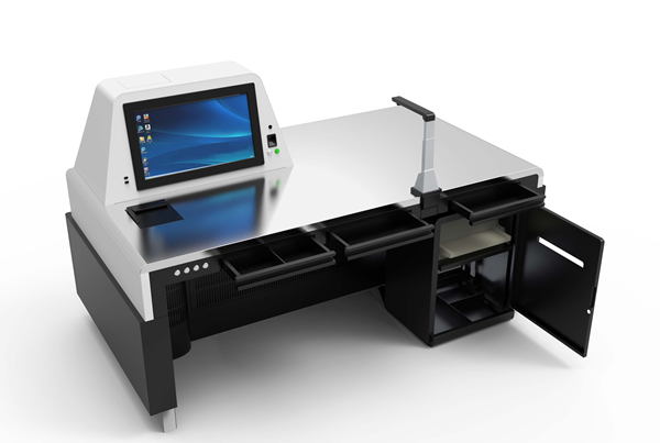 It is used as the intelligent terminal for Customs baggage inspection and handling. It is fully intelligent design, one-click operation. It integrates passport collection, facial recognition, weighing and automatically type-in, QR code scanning, scanning and saving with a high-resolution scanner, price inquiry, alarm display, and on-site audio and video surveillance. The system realizes high-level intelligence and convenience for inspection work.